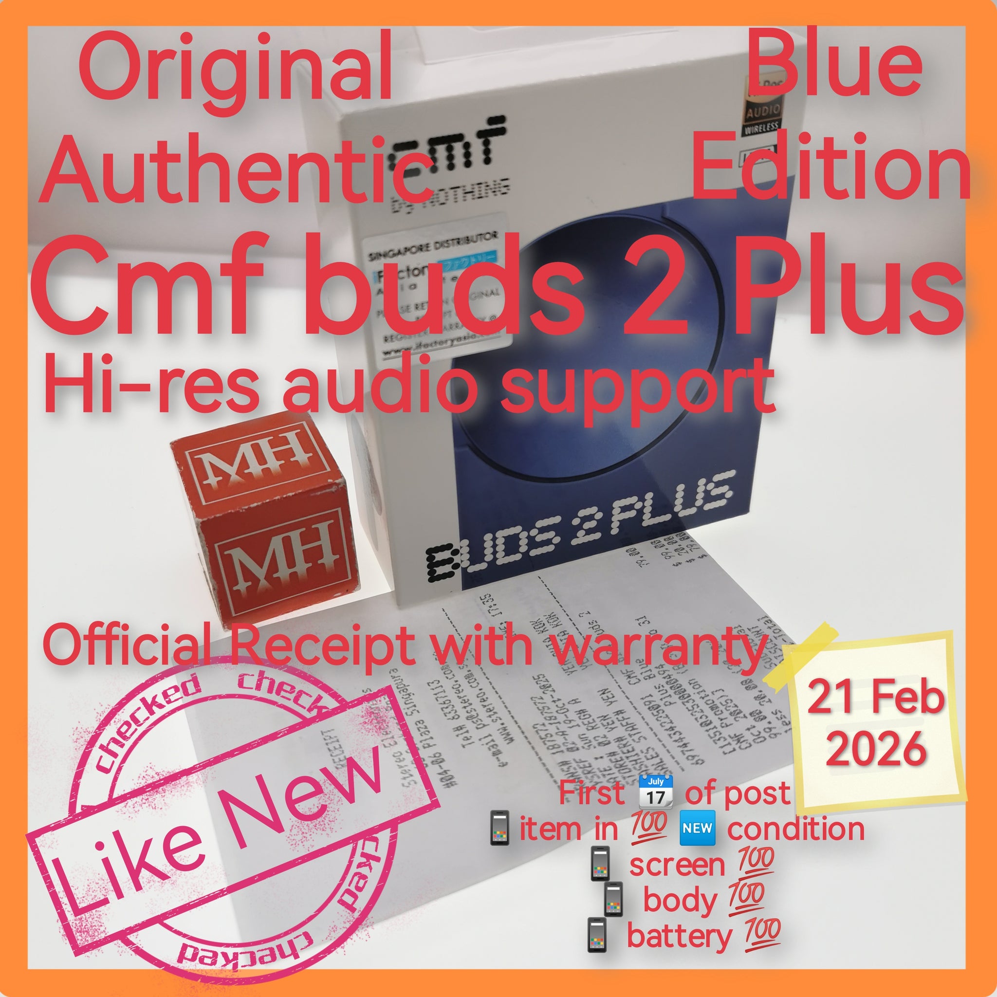 Original Authentic Singapore cmf buds 2 Plus Hi-Res audio support blue warranty full set