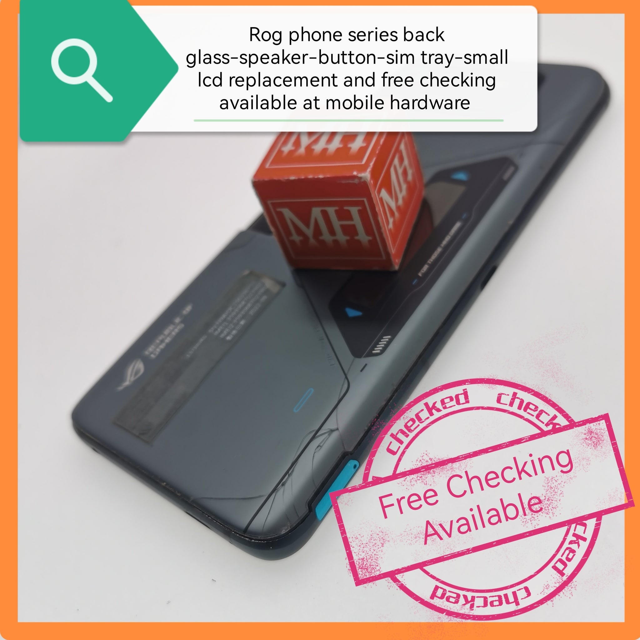 Asus rog phone all series back glass-button-speaker-sim tray-small lcd replacement and free checking available at mobile hardware