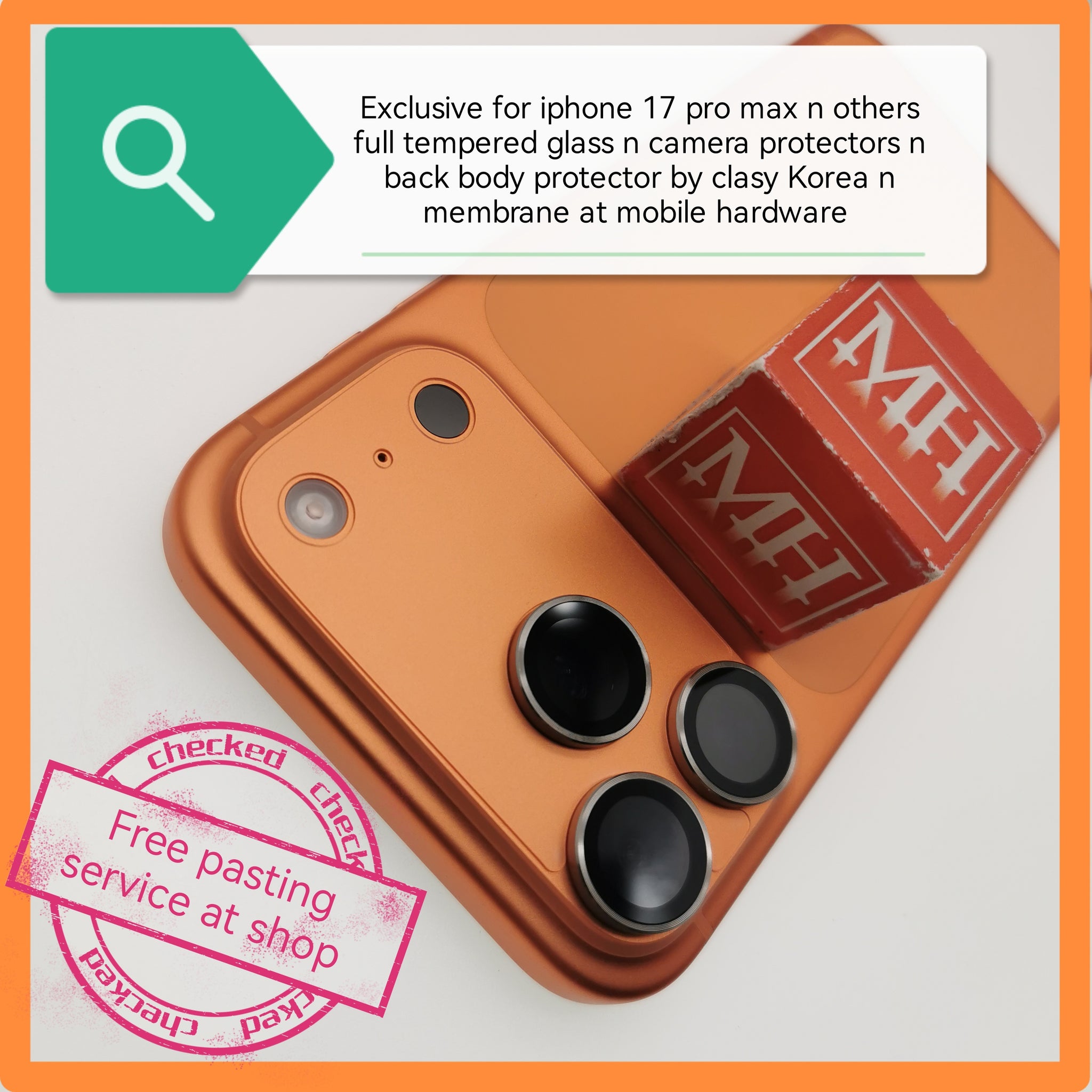 Exclusive for Apple 17 pro max n others full tempered glass n camera protectors n full back body protector by clasy Korea n membrane at mobile hardware