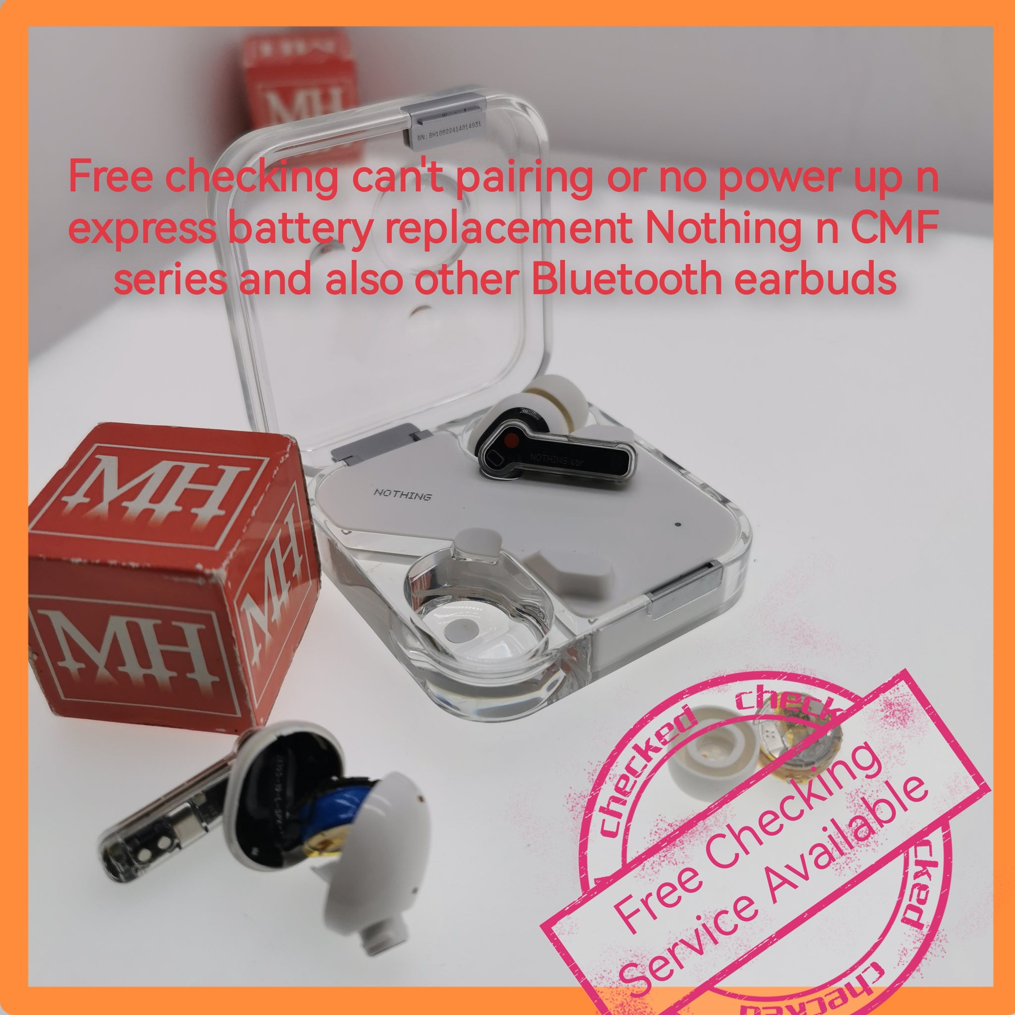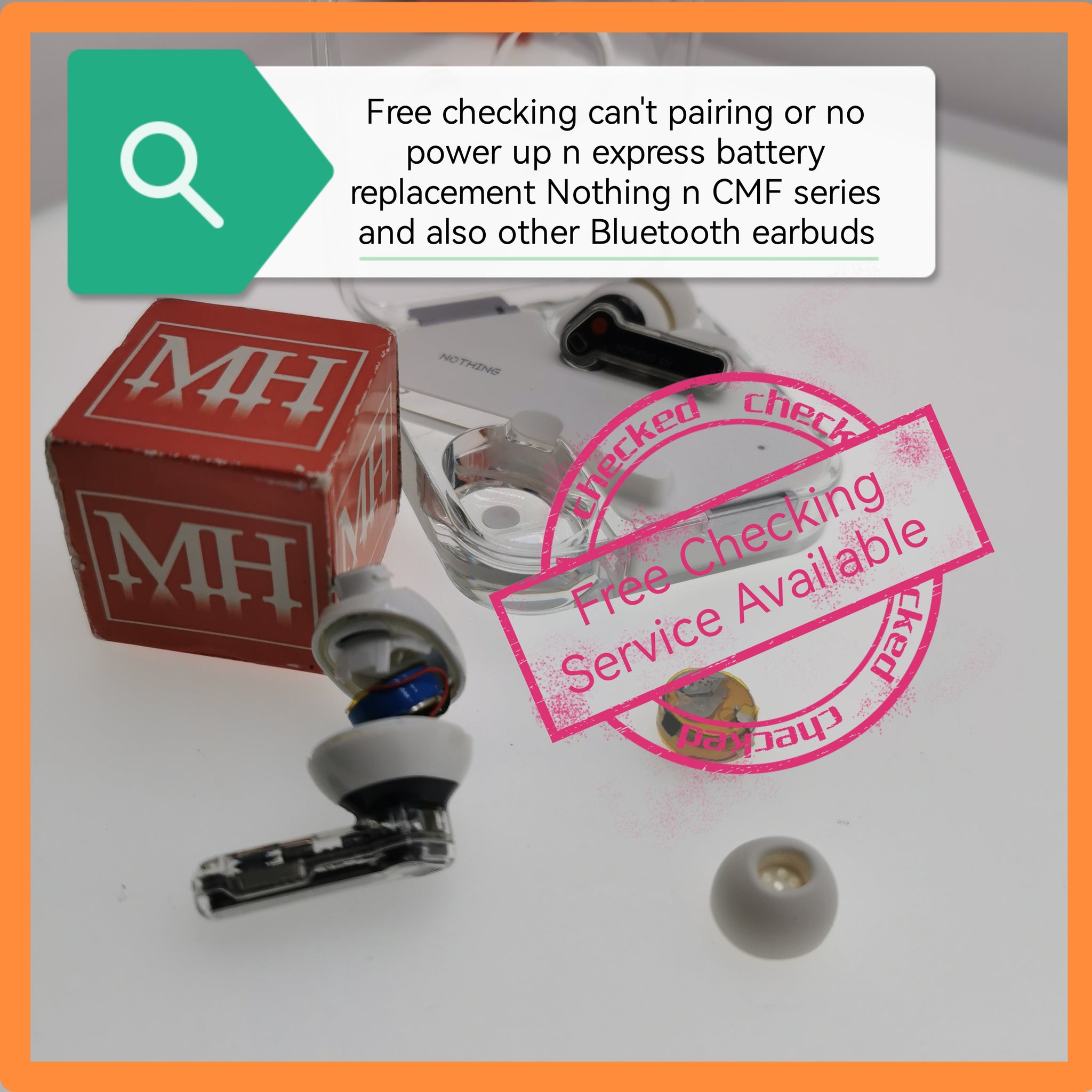 Free checking can't pairing or no power up n express battery replacement Nothing n CMF series and also other Bluetooth earbuds