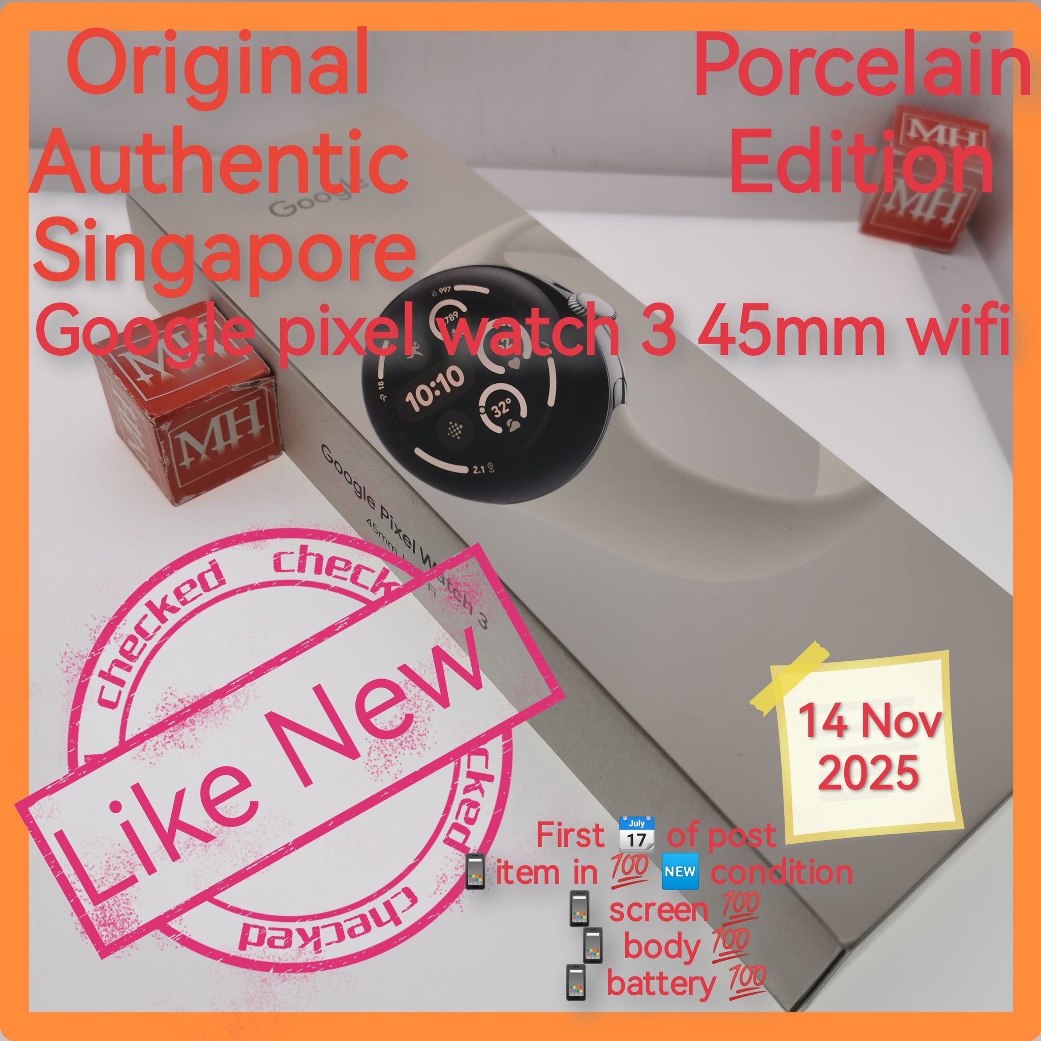 Original authentic Singapore google watch 3 45mm wifi porcelain full set