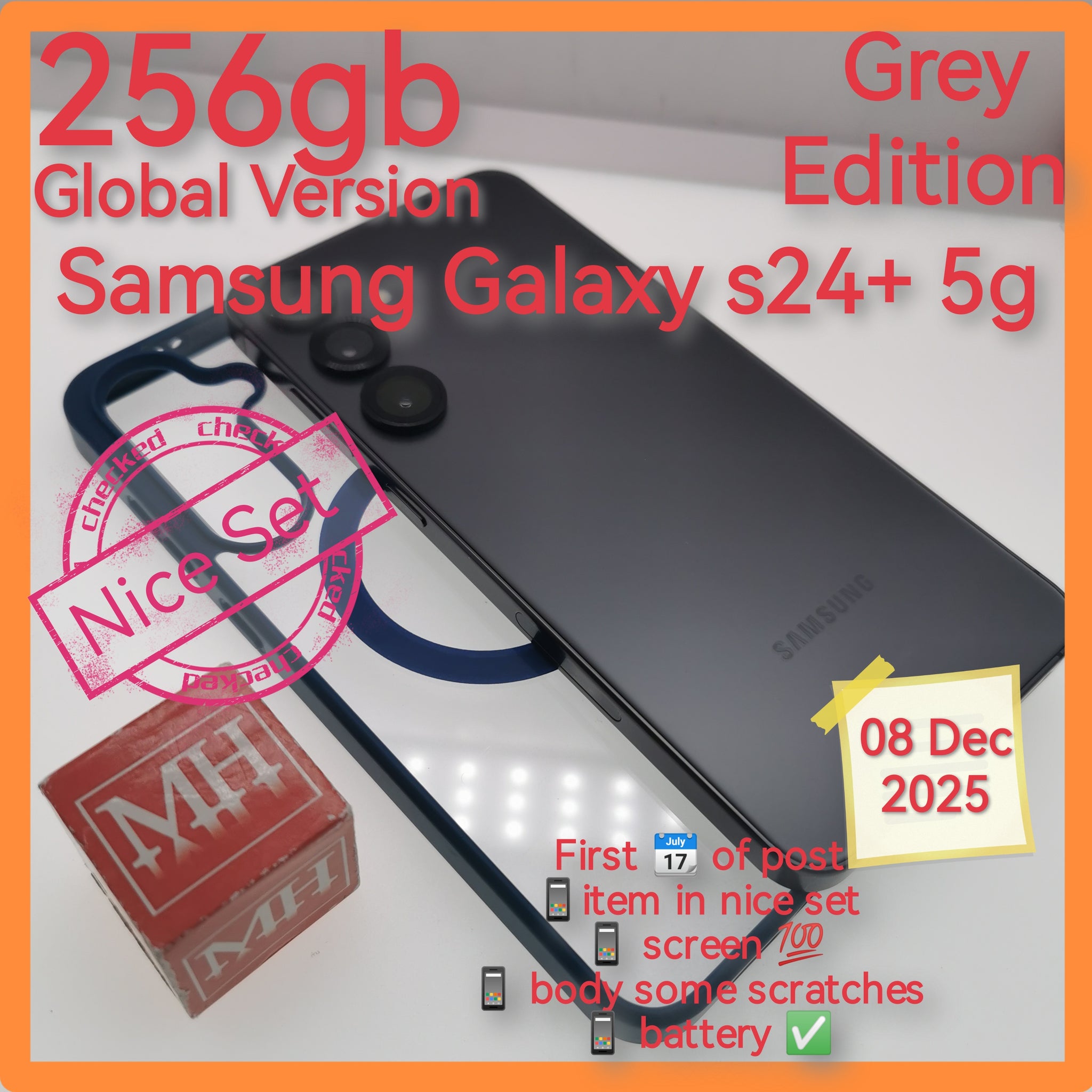 256gb global version Samsung Galaxy s24+ 5g grey with case set
