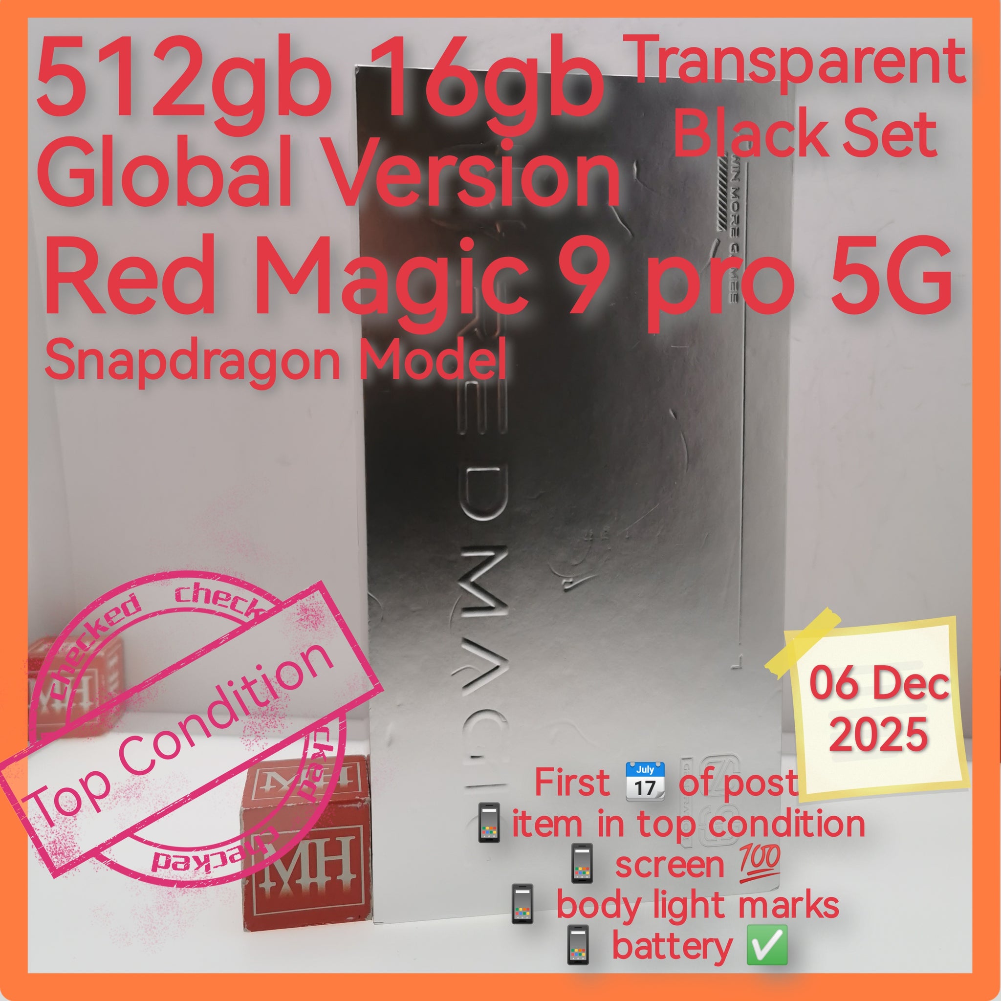 512gb 16gb global version red magic 9 pro 5G snapdragon gaming transparent black full set