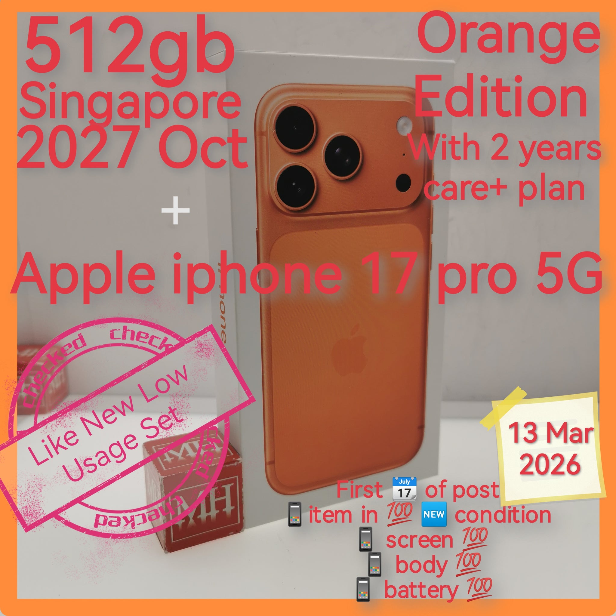 512gb 2027 care+oct Singapore apple iphone 17 pro 5g orange warranty full set