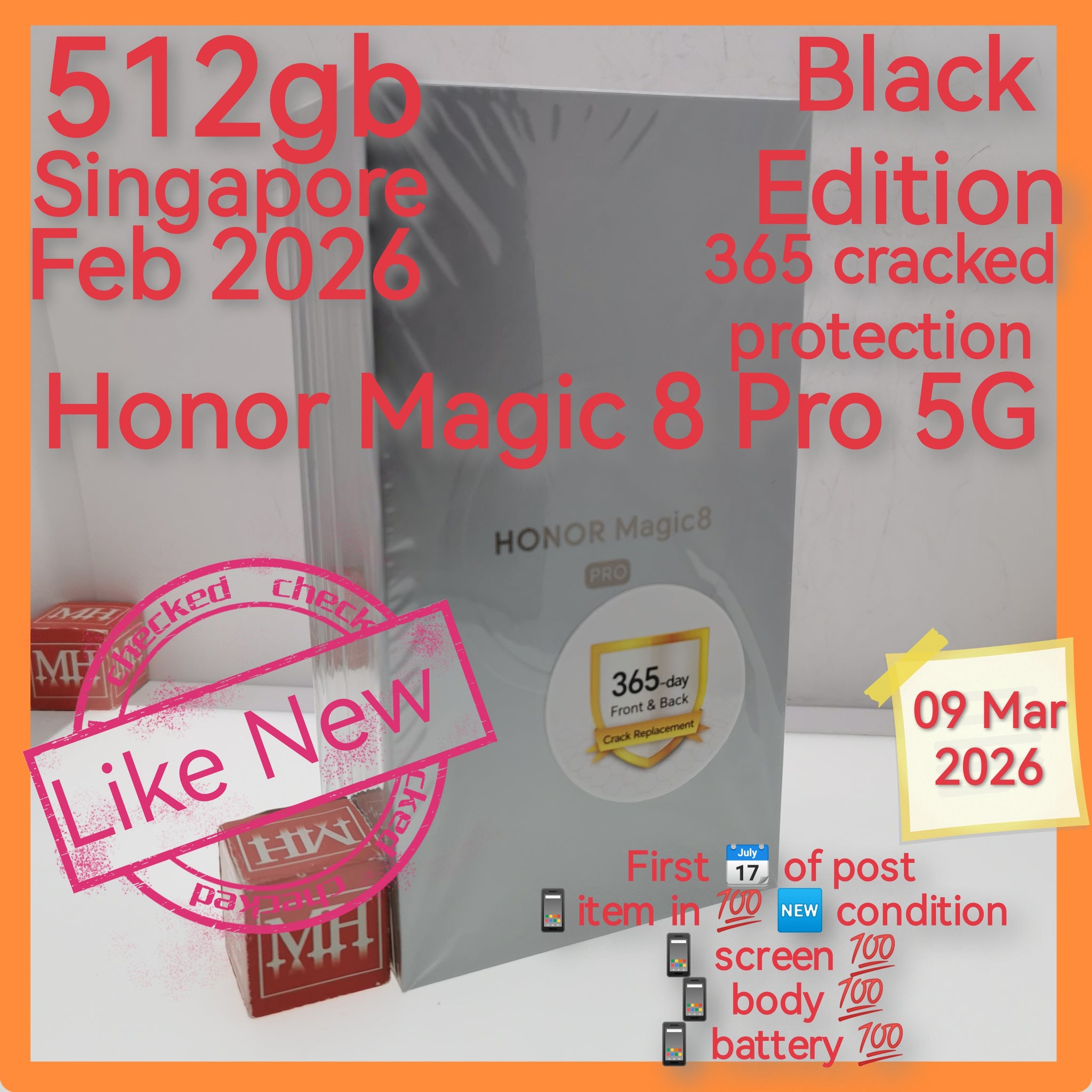 512gb Feb 2026 Singapore honor magic 8 pro 5G snapdragon elite 5 black warranty full set