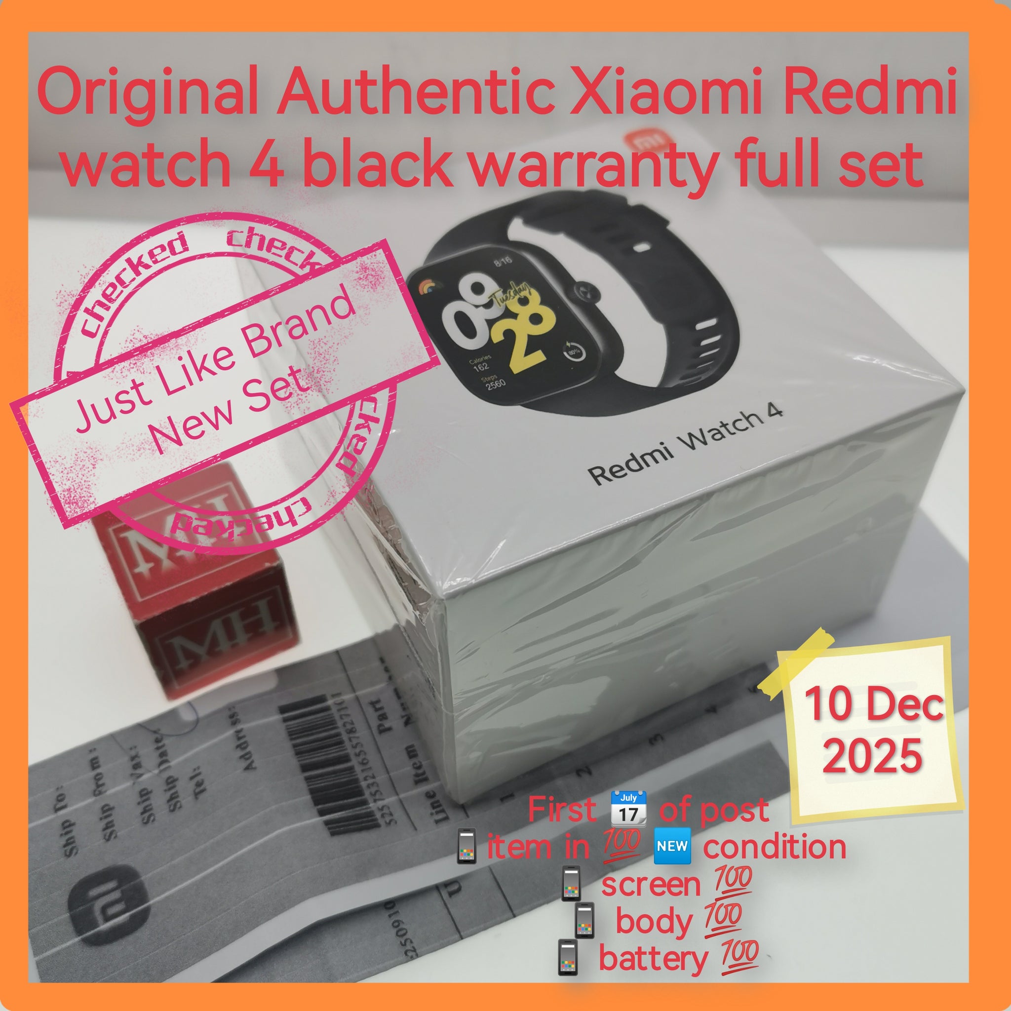 Original Authentic Xiaomi Redmi watch 4 black warranty full set