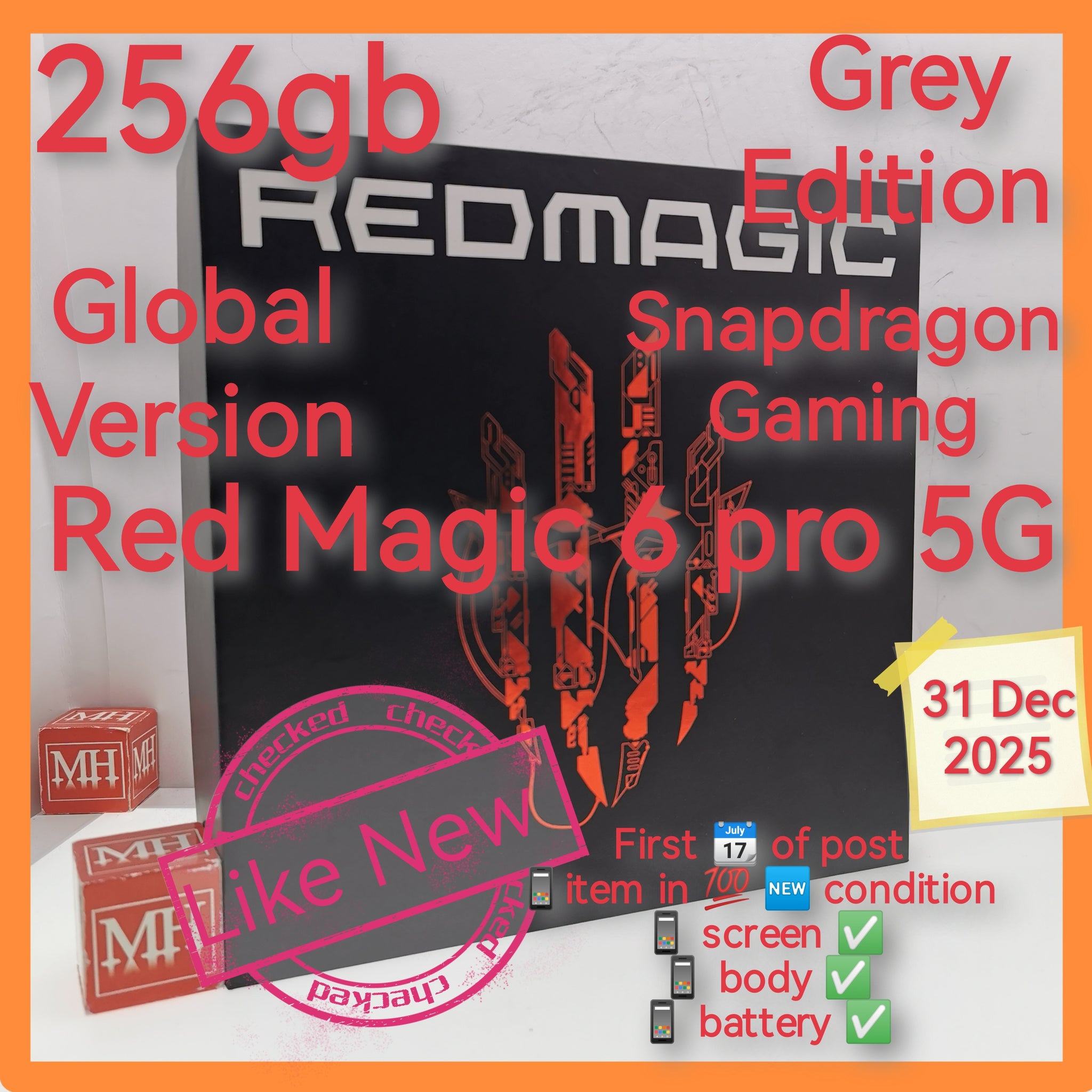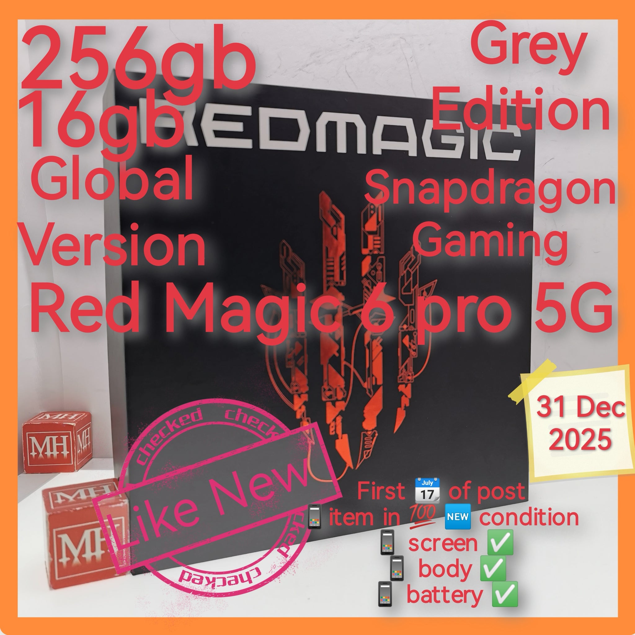 256gb 16gb global version red magic 6 pro 5G snapdragon gaming grey full set