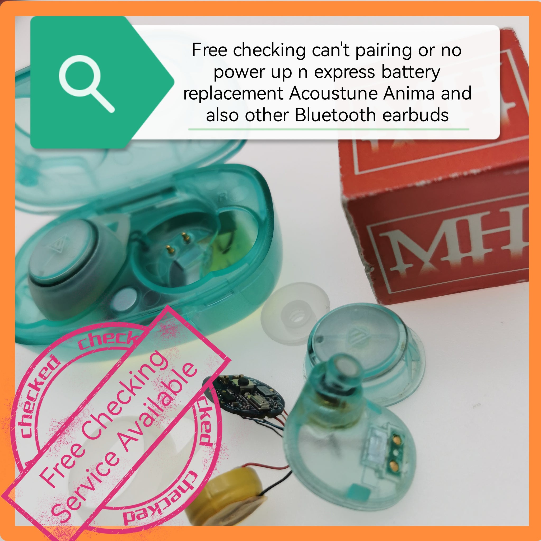 Free checking can't pairing or no power up n express battery replacement Acoustune Anima and also other Bluetooth earbuds